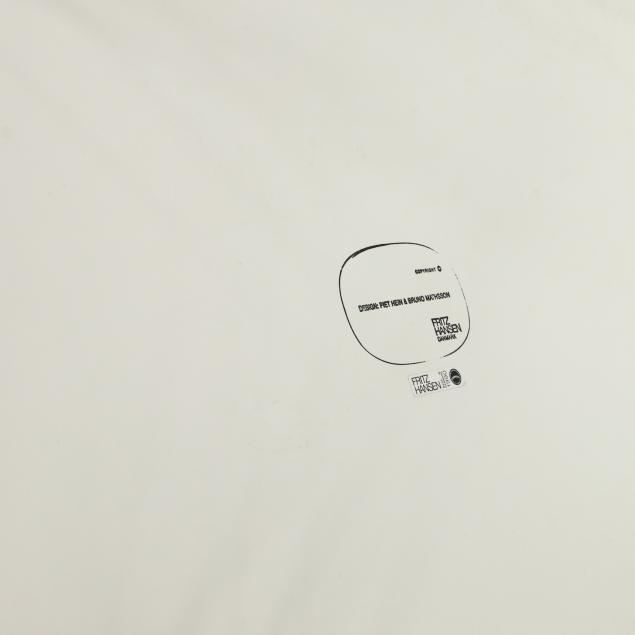 1990 manufacture, including a white laminate and steel table designed by Piet Hein & Bruno Mathsson (28.75 x 39.5 x 39.5 in.); and a pair of