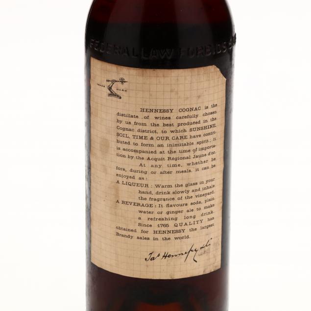 NV, Hennessy & Co. (thought to be 3 Star) Cognac, 42%, thought to be 1944-1949 bottling, ms, missing neck label, sealed (1 4/5 Quart)