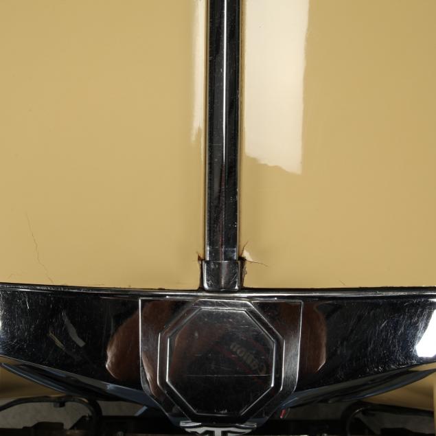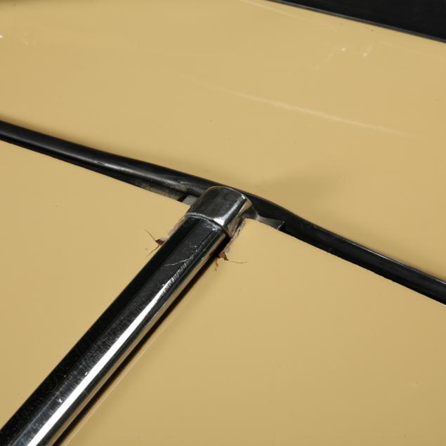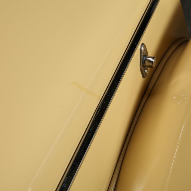 By the body tag, originally a Birch Grey car. A repaint in Ivory is suspected. The interior is finished in red leather, with black carpets. The new top, boot cover and tonneau are black. The chrome brightwork inside is in wonderful condition, as are the original steering wheel, gauges, and radio. The chrome sixty spoke wheels with knock offs and Michelin XZX 165/15 tires appear like new.