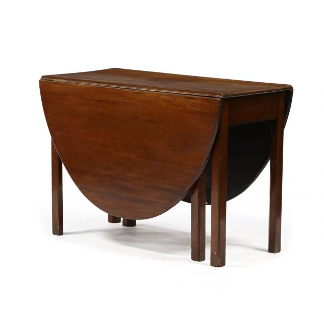 Private Collection, Greensboro, North Carolina Surface stains, scratches and some water marks to the top; rule joint break out and repairs; insect damage to secondary woods; one leg with break and repair at skirt joint; surface spotting near base.