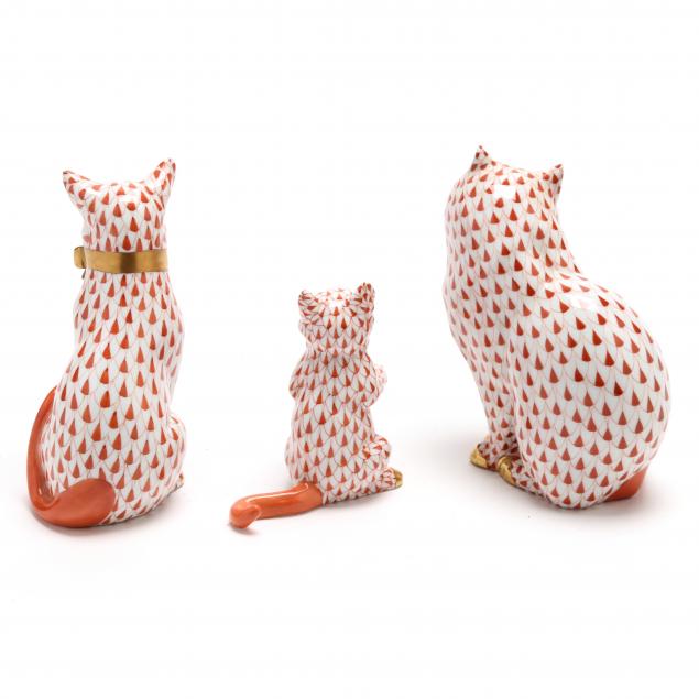 Three Herend Porcelain Seated Cat Figurines