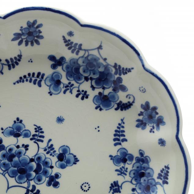 Plate decorated with a woman sewing has extensive crazing and some edge chipping; others good condition with scattered crazing.