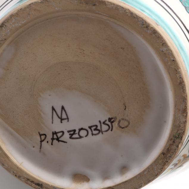 Puente Arzobispo, Toledo, Spain, olive oil jar decorated with animals and greenery, signed on the underside.