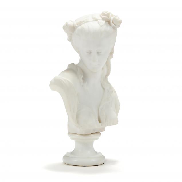 Late 19th century, Italy, carved white marble, incised signature "R. Battelli" to sculpture verso, mounted atop a polished white marble plinth.
