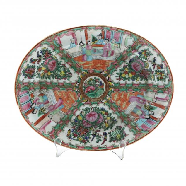 20th century, includes an oval porcelain platter hand painted in Famille Rose palette with a thousand butterflies around the border and a central panel of butterflies and flowers, and an oval porcelain platter hand painted in Rose Medallion palette.