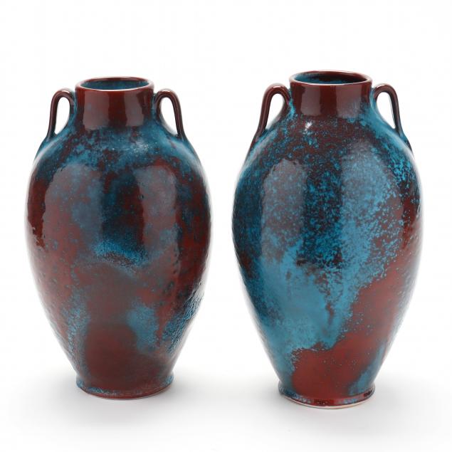 A Well Matched Pair of Double Handled Vases, Ben Owen III (b. Seagrove, NC)