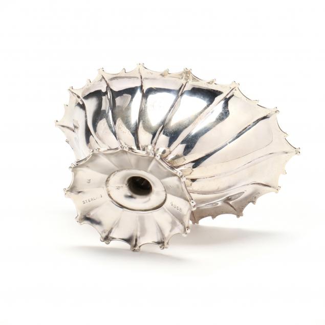 The first an antique sterling silver footed pedestal bowl by Towle, of oval form with shaped edge and conforming foot, period monogram "MFT" (3 3/4 x 7 x 4 3/4 in.); the second a Towle Chippendale low bowl with period monogram "NFB" (6 in. diameter); and the third an oval vegetable serving bowl by Gorham with 1932 date symbol and period monogram "NFB" (LOA 11 in.).