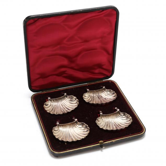 Mark of Hilliard & Thomason, Birmingham, 1900 date mark, presented in a scarlet satin and deep crimson velvet lined case. No monograms.