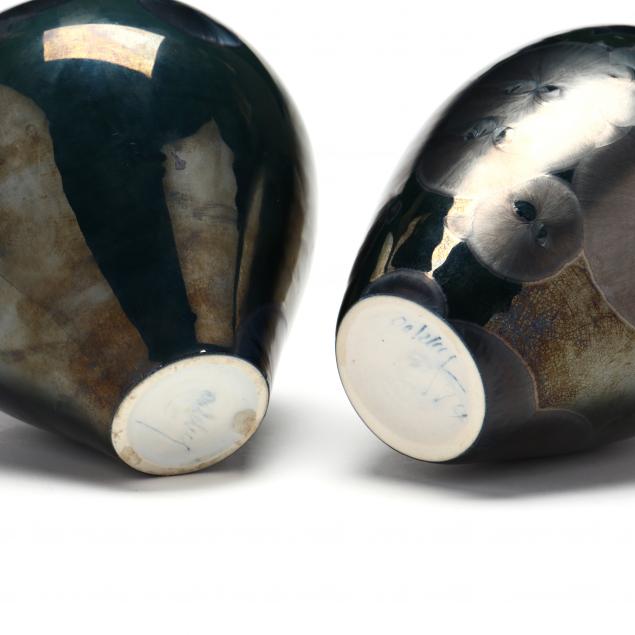 Having striking gun metal crystals over a jade green field, both signed with the taller dated "94."