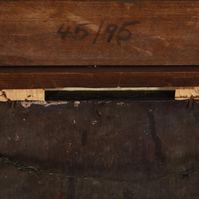 Some staining to silk liner; minor chipping to frame; no evidence of restoration visible under UV light.