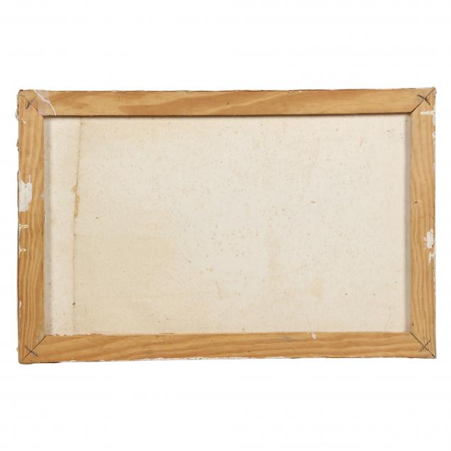 Some scattered mildewing and surface grime; some stress crackle; stretcher impressions to some areas.