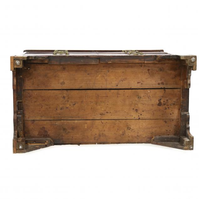 From the Collection of Mr. James L. Parker, Pittsburgh, Pennsylvania Wear, scratching and maring to exterior surfaces; later pulls (but in original holes); missing one lock; no key; some drawer runners rebuilt; left front and rear foot facings replaced.