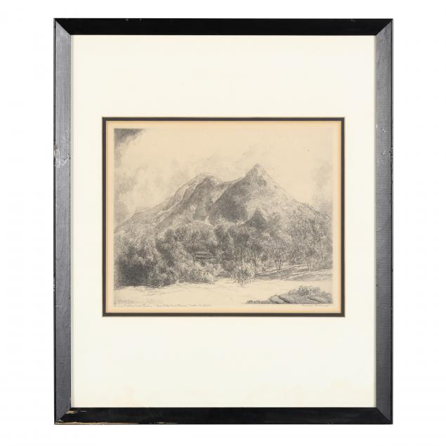 Etching, pencil signed and titled, from Orr's series of North Carolina landmarks completed between 1939-1952, matted and framed.