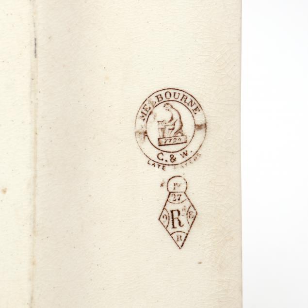 Aesthetic Movement design, English, 1880s, (1 1/4 x 14 x 11 1/4 in.); (5) small mugs probably for a child's use with transfer designs (one with hairline; one with crazing); (8) mugs with