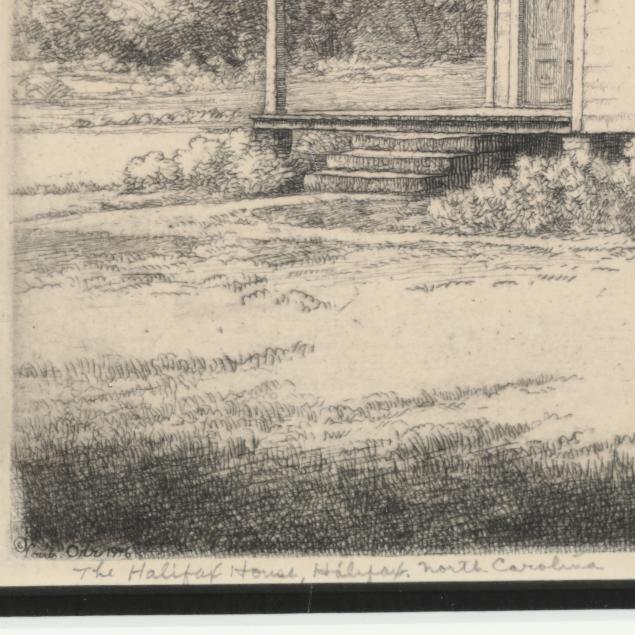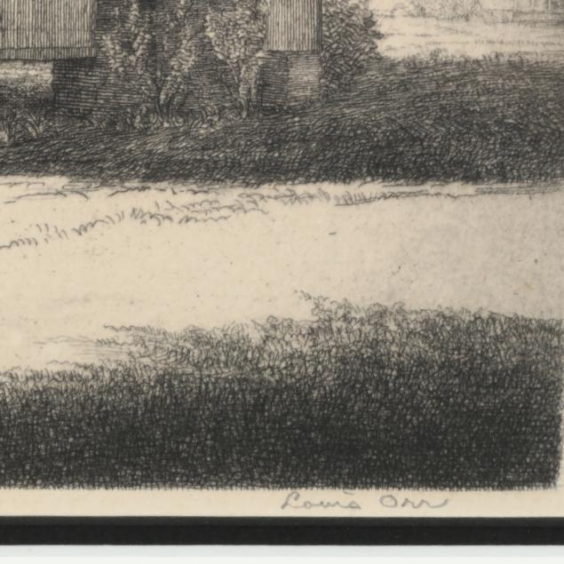 Etching, pencil signed and titled, from Orr's series of North Carolina landmarks completed between 1939-1952, matted and framed.