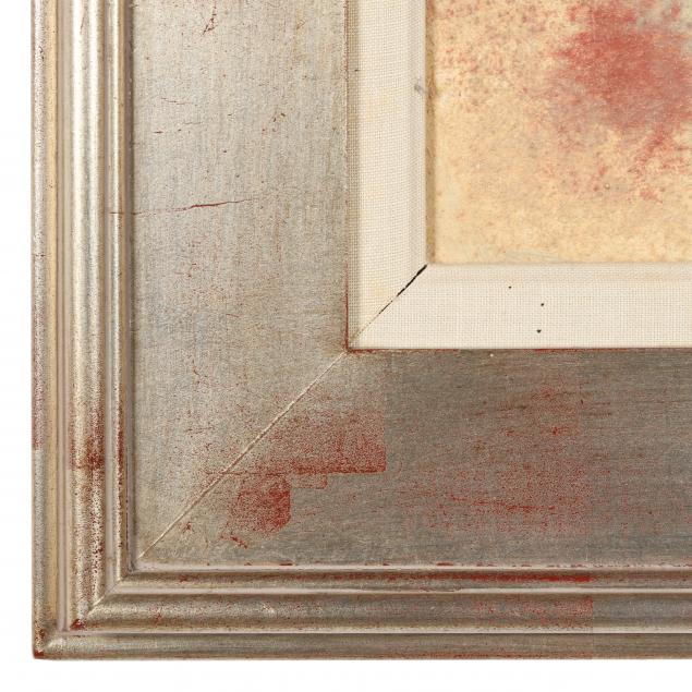 Oil on panel, signed at lower right, inscribed and dated 1992 to verso, presented in a white gold leaf frame with linen liner.