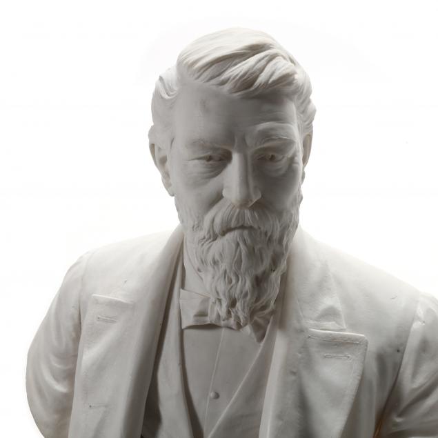 Carved white marble, nicely rendered larger than life size bust of a bearded gentleman in formal attire, mounted upon a round marble pedestal base, incised signature "G. Trentanove / Florence / Italy" to verso.