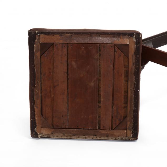 Mid-18th century, upholstered slip seat, square form with molded edge, flush skirt, cabriole legs with acanthus relief carved knee, pad feet.