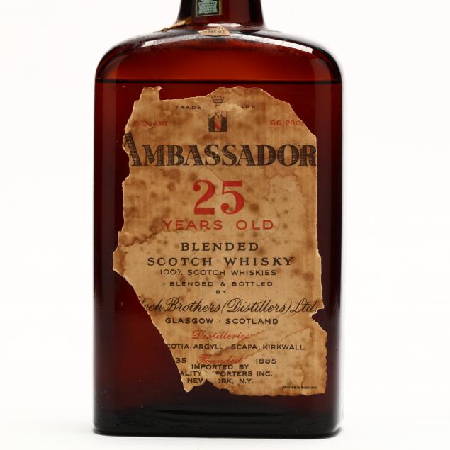 NV, Ambassador Blended Scotch Whisky, 25 Years Old, Bloch Brothers Ltd, Glasgow, Scotland, 43%, thought to be 1950s bottling, ls, bsl, tal, sealed (1 4/5 Quart)