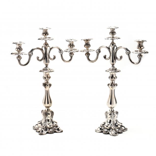 Mark of Adolf Kander, convertible three-light form with removable bobeches, no monograms or engraving.