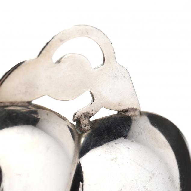 The heart shaped leaf dish with mark of Tiffany & Co., no monogram (3 1/4 x 2 1/2 in.); the shell dish with mark of Gorham, pattern number 445, script "MGC" monogram (5 x 5 x 7/8 in.).