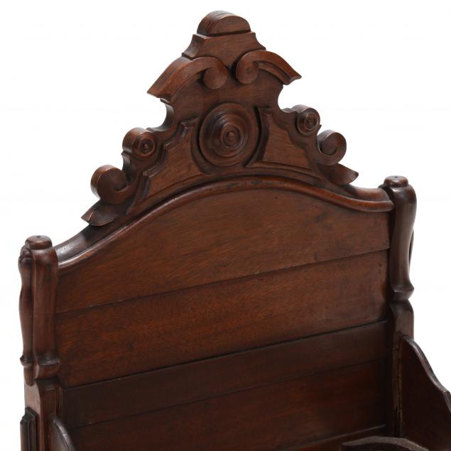Circa 1880, shaped head board and foot board with attached shaped rails and slats, on porcelain casters.