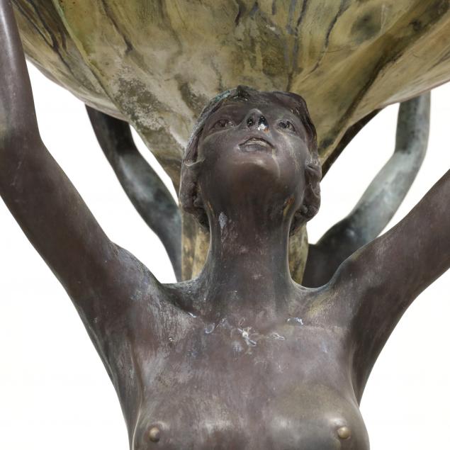 Some areas of staining and verdigris from outdoor use; a few small scratches to patina; overall good estate condition.