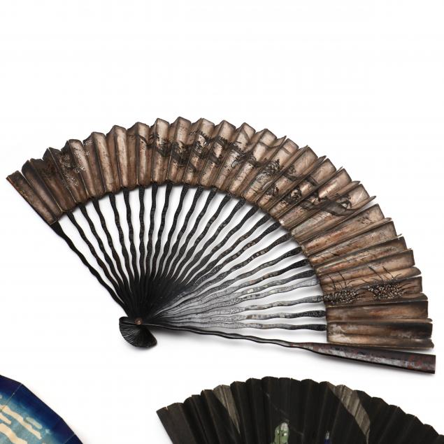 From the Collection of Keil Wurl, Raleigh, North Carolina The silvered fan with some tears to creases; the smallest with a small tear to right corner at crease; all in a fairly delicate state but worthy of framing and would make a wonderful display.