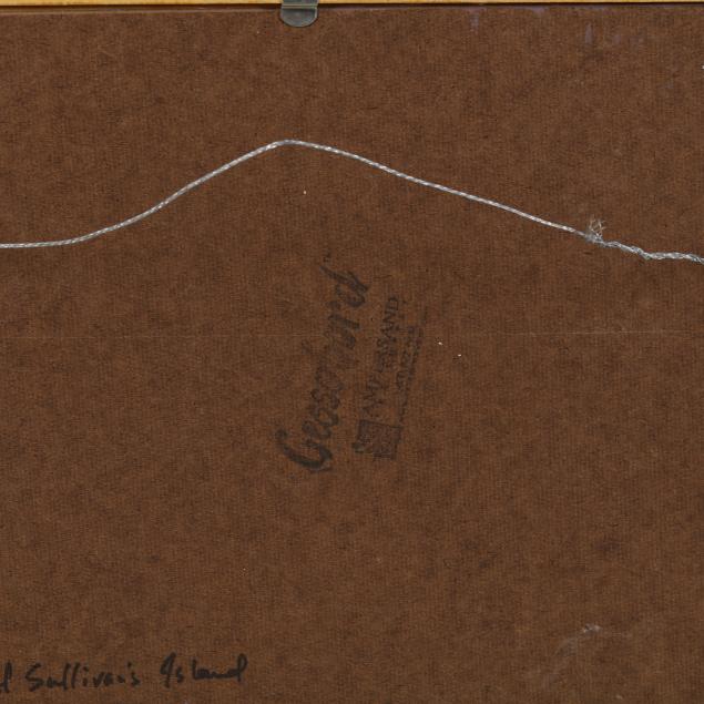 Oil on board, signed at lower left, retains gallery label to verso, presented in an ebonized frame with gilt liner.