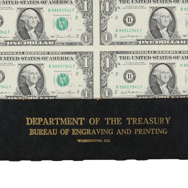 Uncut Sheets of (16) Series 1976 $2 Star Notes and (16) Series 1981 $1 Notes