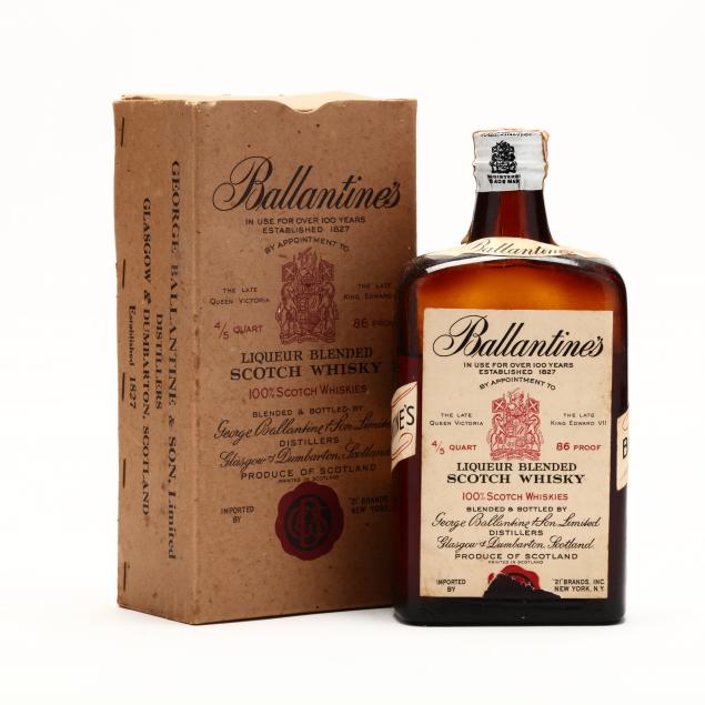 NV, Ballantine's Liqueur Blended Scotch Whisky, George Ballantine & Son Limited Distillers, Glasgow & Dumbarton, Scotland, 43%, late 1930s/1940s bottling, over 2/3 full, snl, sealed, ocb (1 4/5 Quart)