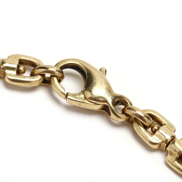 Bracelet comprised of fancy links completed with a lobster clasp and with signature link with Italian registry mark 207 VI for Livio Bevilacqua, stamped K18.