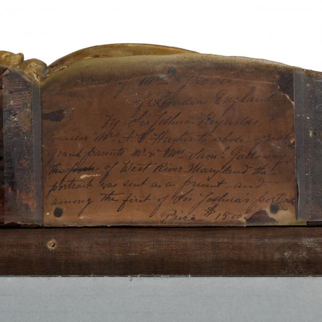 Sylvanus Groves was the London-based factor for Samuel Galloway, a wealthy planter in Anne Arundel County, Maryland. Groves and his wife sat for Reynolds in London a total of seven times from July 1755 through January 1756. According to family history, this pair of portraits was to be traded for a pair of portraits of Samuel Galloway and his wife, painted by John Wollaston around 1753. While this pair of portraits crossed the Atlantic, the Galloway portraits remained in Maryland and of unknown whereabouts.