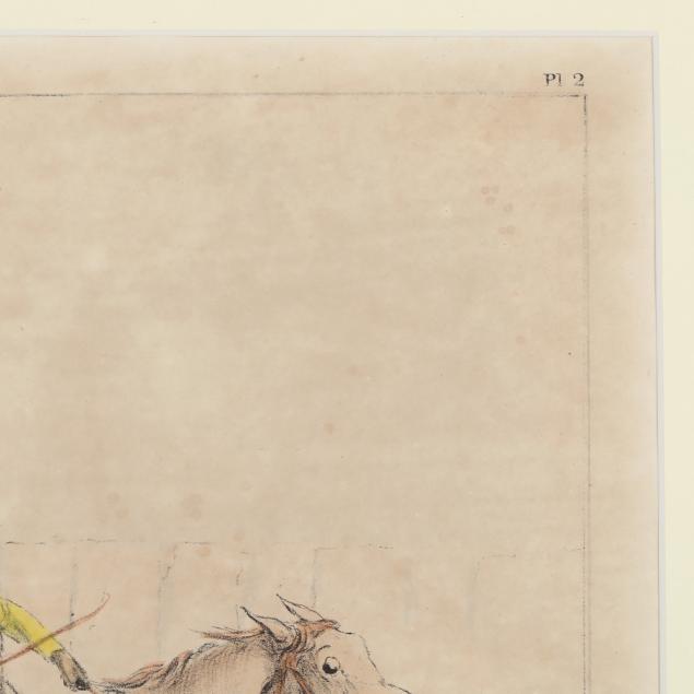 Sketches of the Washington Races in October 1840 by an Eye-Witness, each print is captioned with a few lines of narrative verse telling the story of one particular race and its outcome. The series is presented behind mats in matching contemporary giltwood frames (Sight size 12 x 15 in.; Frame Dimensions 19 x 22 in.) (Moderate foxing throughout; not examined out of the frames, the prints retain good color); plus...