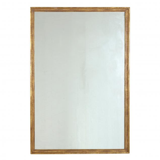 Early 20th century, carved and gilt wood rectangular frame with fluted concave edge and beaded trim, verso with paper label for Grippi, New York framing, currently wired to hang vertically or horizontally.