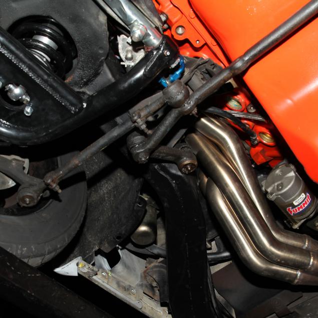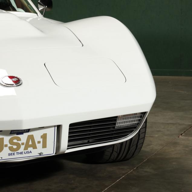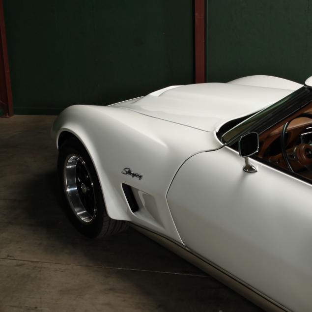 A complete overhaul, including massive upgrades, was performed to this car by its owner over the course of twenty years. Originally a big block car, a new GM Performance Parts 454 cubic inch big block V8 engine, a Keisler Engineering modified Tremec TKO 5-speed manual transmission with a period correct shifter, Stage 1 clutch, and balanced driveshaft were installed. With Holley Street Avenger carburetor, and stainless steel KOOKS headers, an estimated horsepower rating of 450 is conservative. The hood was modified with with a cowl intake with a K&N filter installed, as well as an aluminum radiator and electric FlexLite fans. To improve the suspension, all new a-arms, bushings and rear stabilizer bars from Global West as well as adjustable coil over shocks, and adjustable rear shocks from Viking were added. The rear stabilizer bars were lowered to increase the stability, and a quick ratio steering unit was added. Convertible Corvettes had a removable cross member as opposed to the fixed unit in coupes. To ease furture service, the cross member was made removable. For brakes, Wilwood four piston calipers were used with drilled and slotted rotors. Seventeen-inch US Mag wheels in black with polished lips were used with Nitto T555 255/50ZR17 tires with less than 1000 miles.