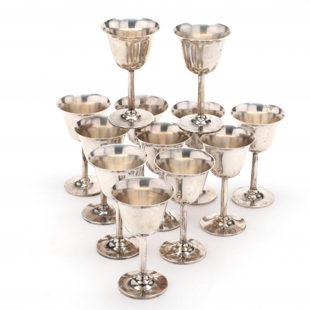 Set of Twelve Sterling Silver Wine Goblets