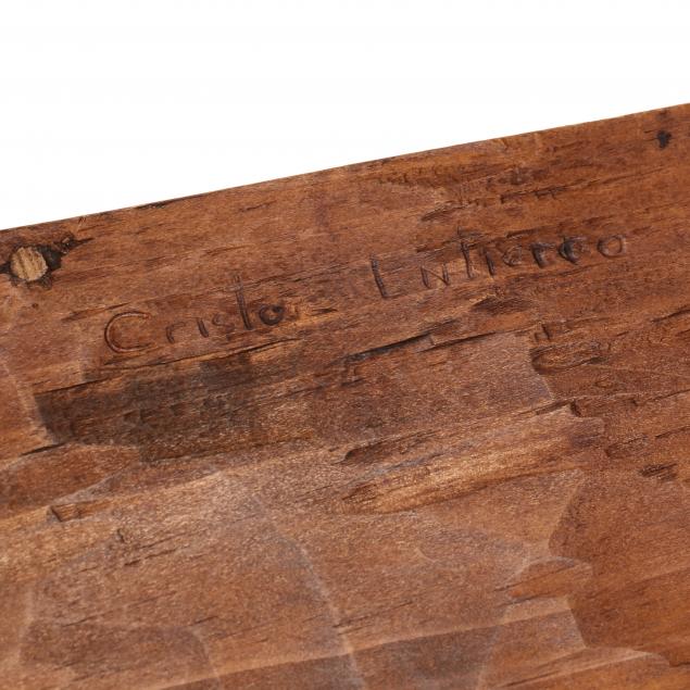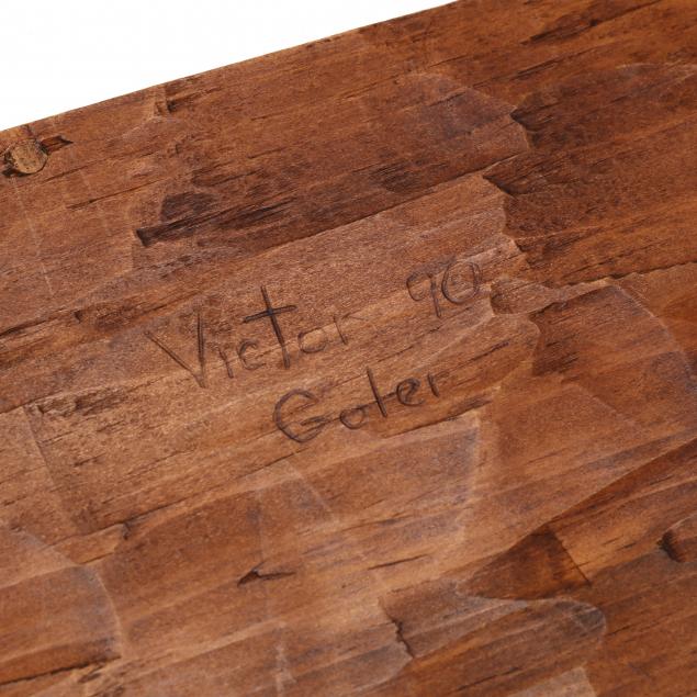 From the Collection of the late Keith Stanley, Professor Emeritus of Classical Studies at Duke University, North Carolina Gustavo Victor Goler was raised in Santa Fe, New Mexico among a family of Latin American art conservators and restorers. His work as an art conservator has exposed him to historic New Mexico Santos in churches, museums, and private collections while his technical ability as a woodcarver and in-depth knowledge of materials has allowed him to create original pieces with a unique style. Aside from Spanish Market, he has participated in individual, museum and group shows alongside some of New Mexicos award winning artists. These exhibitions include retrospective shows at the Harwood Museum in Taos, NM and the National Hispanic Cultural Center in Albuquerque, NM. Gustavo is the recipient of many awards including the Spanish Colonial Arts Society Masters Award for Lifetime Achievement in 2016.