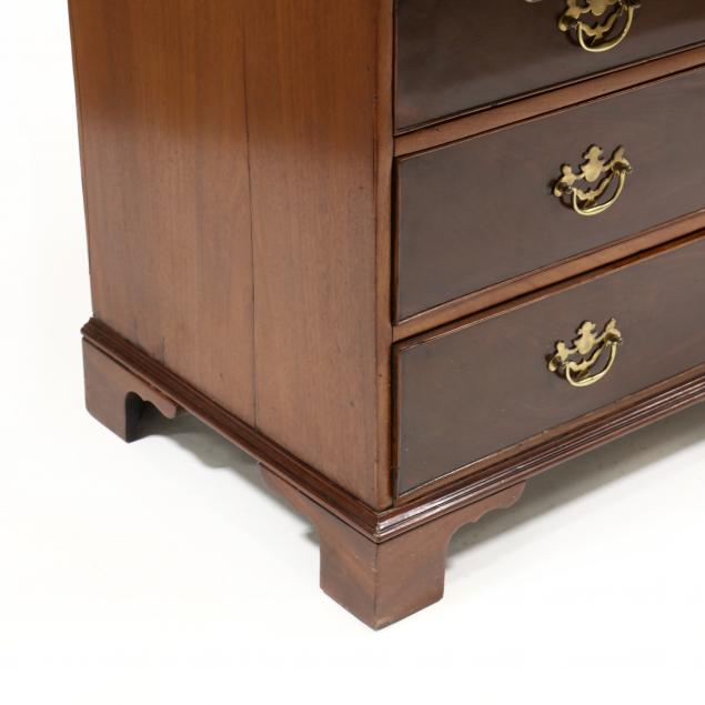 Private Collection, Clarksville, Virginia Lid with warp to upper right corner; patches at hinges, escutcheon and upper right corner; top of case with later brass plate and area of loss from lock; later hinges with patches; later pulls; later rear right foot facing; shrinkage cracks to sides of case.