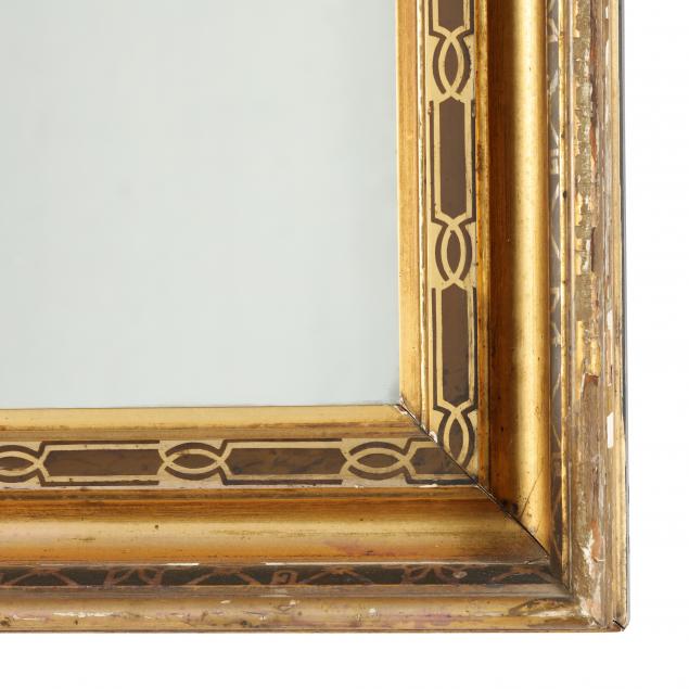Late 19th century, gesso and gilt wood, with stencil painted geometric motif, appears unmarked.