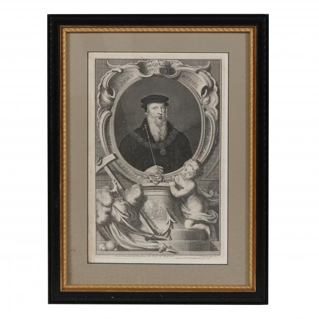 Engravings, 18th century (possibly later printings), to include: "John Russell, The First Earl of Bedford," "Francis Russell, The Second Earl of Bedford," "Robert Rich, Earl of Warwick," "Henry Boyle, Lord Carleton," "Thomas Howard, Earl of Arundel," "Algernon Percy, Earl of Northumberland," "Henry Stafford, Duke of Buckingham," "Thomas Howard, Duke of Norfolk," "Charles Howard, Earl of Nottingham," and "Robert Earl of Lindsey," presented in uniform matting and framing.