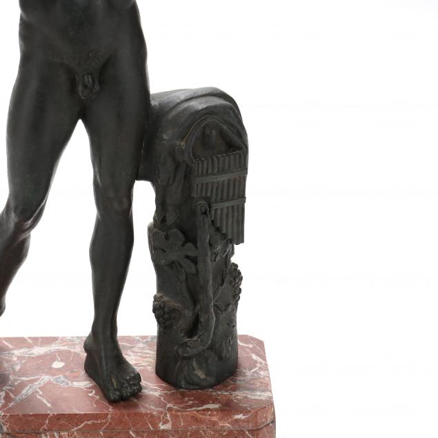 The Collection of the late Mr. William Hulbert, Chesapeake, Virginia Some rubbing to patina, light verdigris; separation to area where trunk and leg meet; hairline near upper right calf of Satyr.