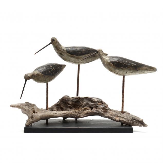 Three Yellowlegs (Eastern Shore Virginia), Mounted on Driftwood