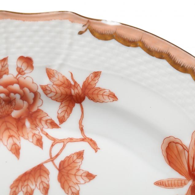 Several dinner plates with partial loss of color to the butterflies and one plate with edge chip; a saucer #1726 with chip.