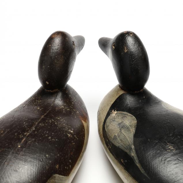 Original paint with moderate gunning wear, tight age checks in the bottom of each bird, hen has some filler left side of the head behind the eye.