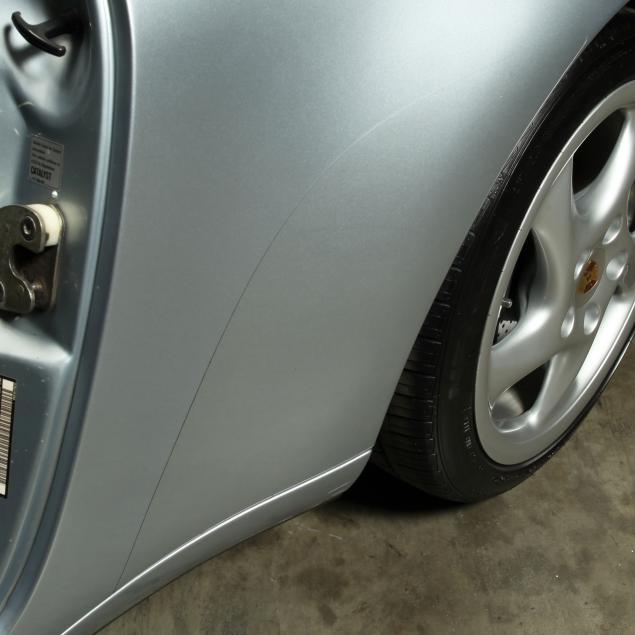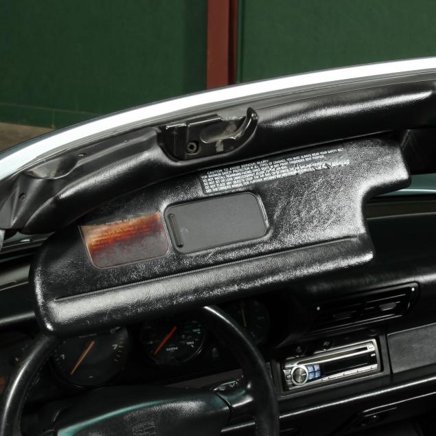 Exterior paint in Polar Silver Metallic, with 17" turbo look aluminum wheels. Originally equipped with a Blaupunkt Toronto audio system and cruise control. An aftermarket Alpine 9872 AM/FM/CD player has been installed with a Sony amplifier in the trunk. An all black interior with leather seats.