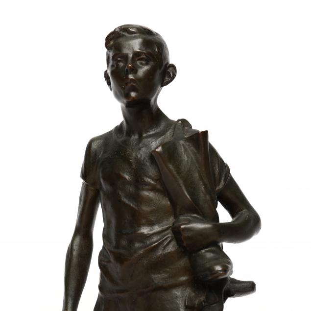 Adolf Josef Pohl (Austrian, 1872-1930), Bronze Boy Striding with Boots