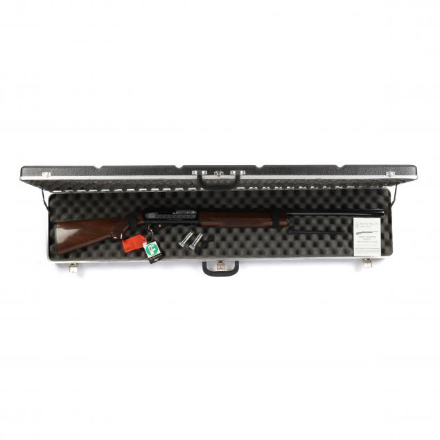 Serial number 92DU0894 on the receiver, 28 in. ventilated barrel marked LUIGI FRANCHI -SPA-BRESCIA-MADE IN ITALY 12 GA CHAMBERED 3', engraved on both sides with a DU pattern, checkered walnut stock and forend, two chokes included, hard sided carrying case, length of pull 14.5 in. Will Require FFL Transfer.