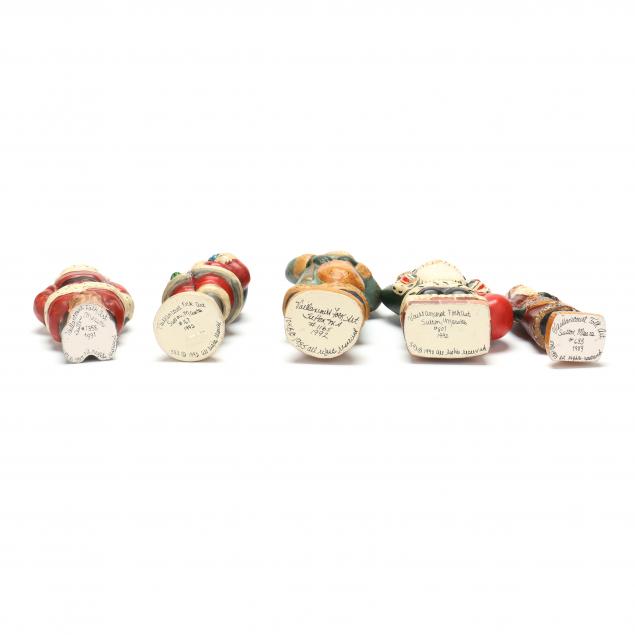 1989 flat back #633; 1992 #1165 (9 3/4 in.) and #807 (8 1/2 in.); 1991 #1358; 1992 # 167 (7 1/4 in.) all signed.