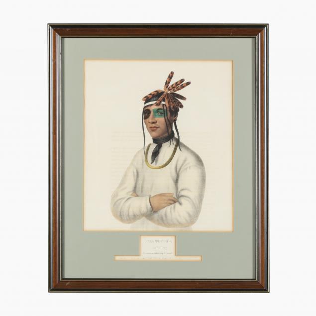 Hand-colored lithographs, printed 1836-37, from History of the Indian Tribes of North America, matted and framed.